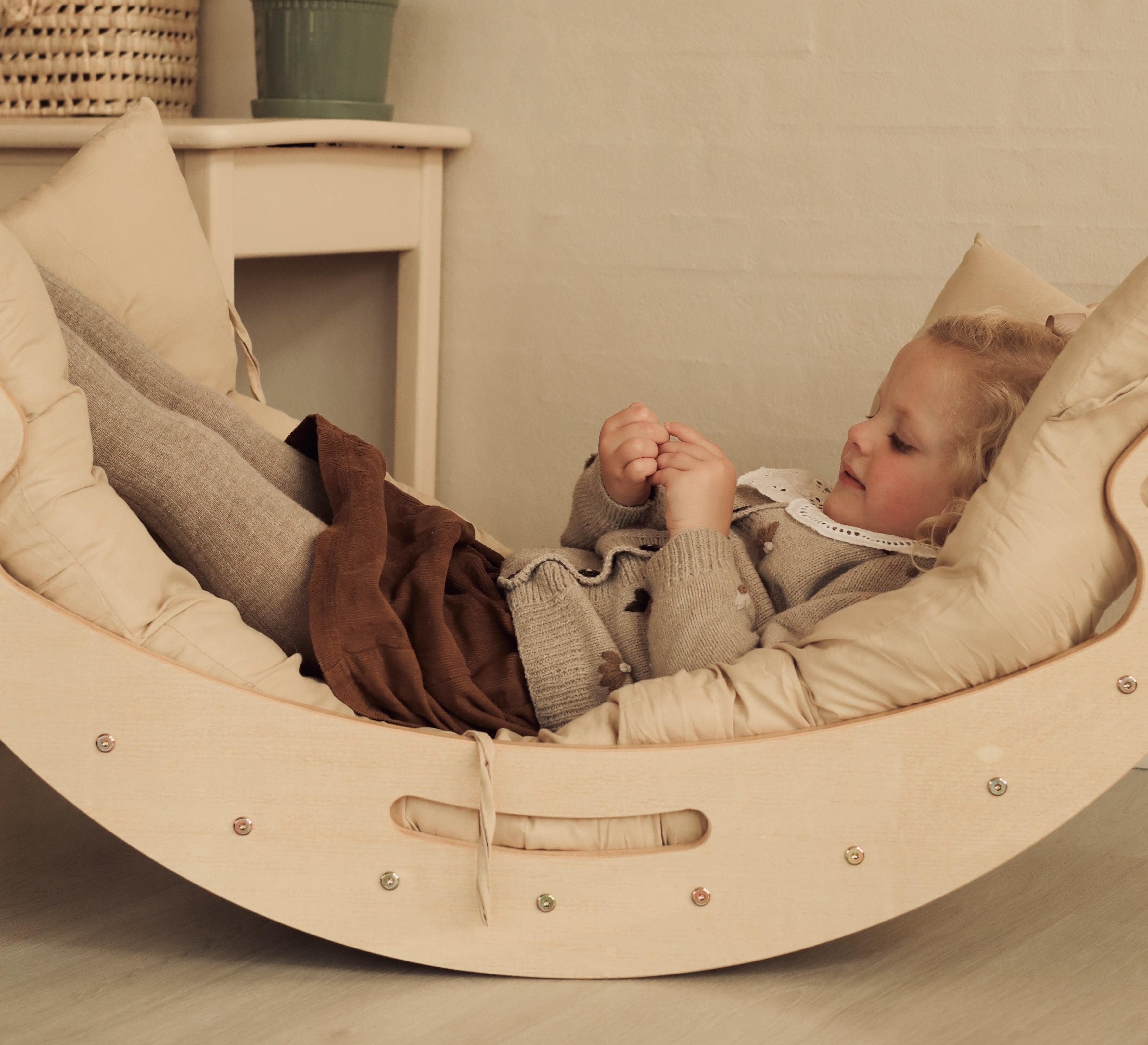 En möbel med mĂ„nga möjligheter â den populĂ€ra klĂ€tterbĂ„gen kan anvĂ€ndas som gungbrĂ€da eller gunga, klĂ€tterstĂ€llning eller mysplats.