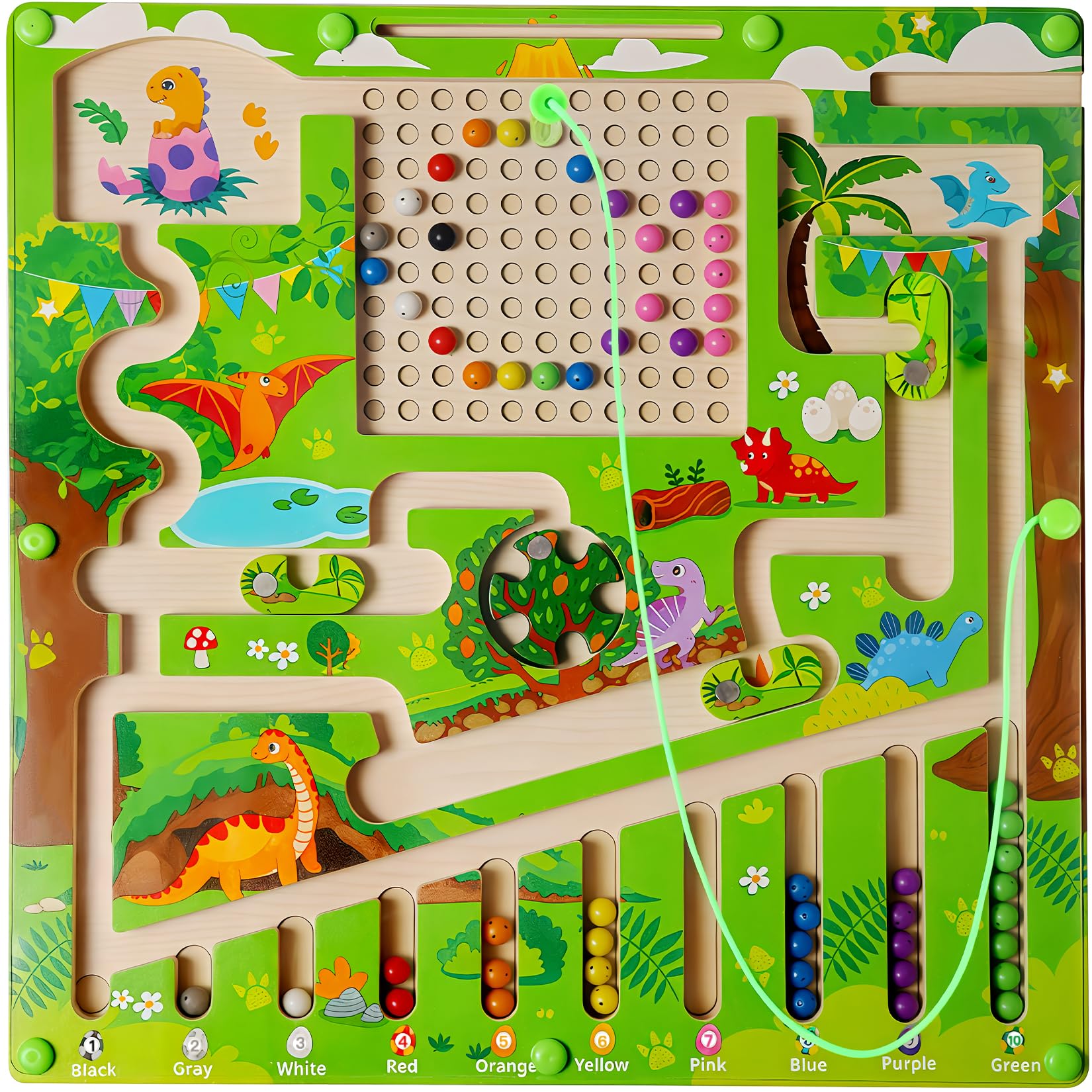 Denne tavle består af en robust træplade med magnetiske elementer, farverige tal og et labyrintmønster samt kort. Små børn kan bruge de magnetiske tal til at navigere gennem labyrinten og placere dem på det rigtige sted på tavlen. Desuden kan de større børn bruge den som et læringslegetøj, og lære at tælle, og efterligne mønstre. Dette fremmer ikke kun deres sorterings- og tællefærdigheder, men også deres koncentration og problemløsningsevner.