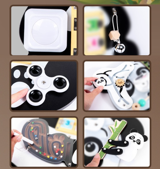 Förvandla ditt barns lekupplevelse med vår panda-aktivitetstavla – en oumbärlig följeslagare på ditt barns resa mot kreativt uttryck.