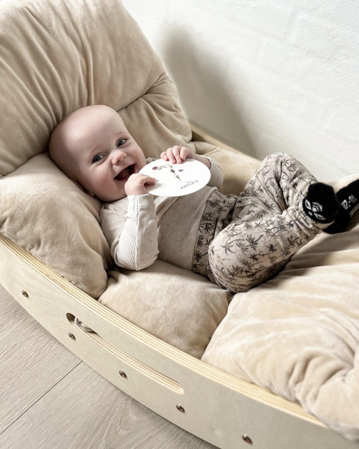 Mjuk velourmadrass med band – gör Luna klätterbåge till en trygg och mysig plats för lek och vila.