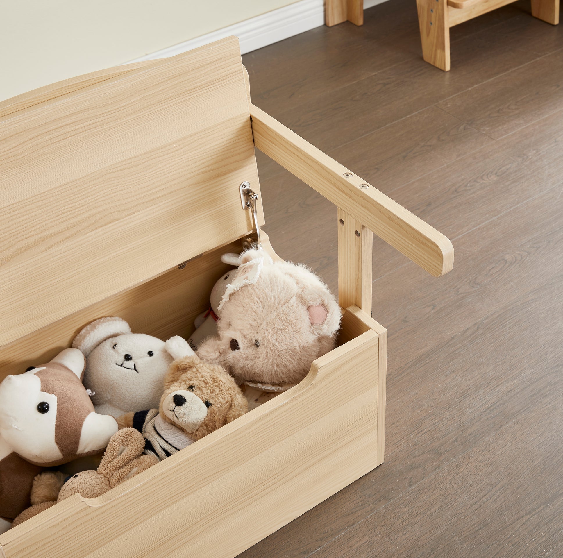 Den rymliga förvaringsdelen under sitsen rymmer en betydande mängd leksaker, böcker och andra föremål. Du kommer att märka att den hjälper till att hålla rummet organiserat och snyggt.